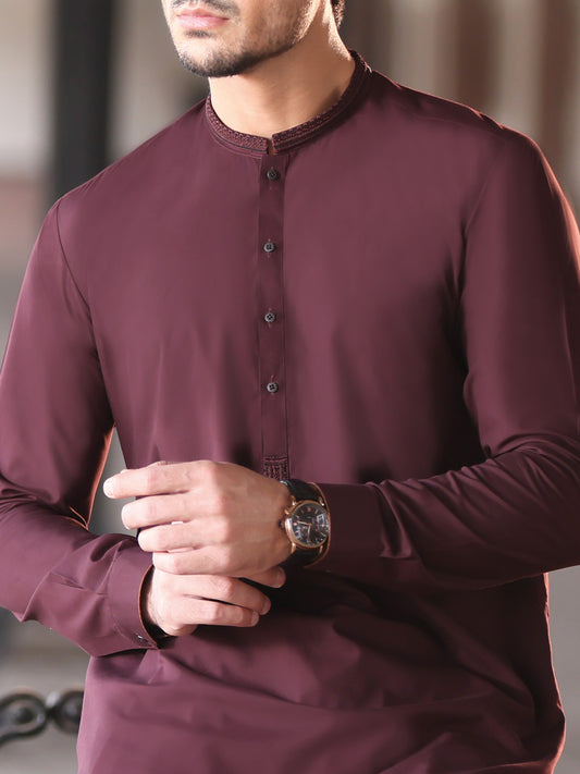 Burgundy Blended Kameez Shalwar - AL-KS-2599