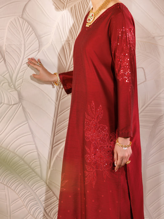 Maroon Raw Silk 2Pc Formal Stitched - AL-LS-LKS-478