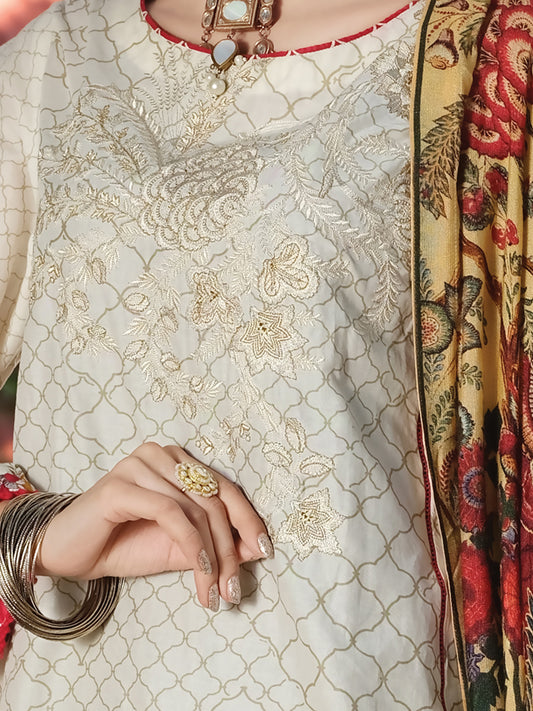 Off White Raw Silk 3Pc Stitched - ALP-745
