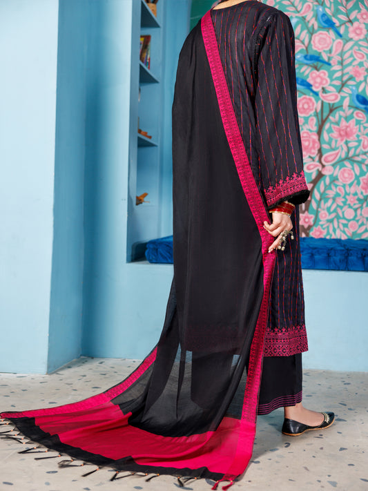 Black Lino Kara 3Pc Stitched - ALP-3PS-1923