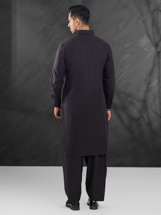 Dark Brown Blended Kameez Shalwar - ALWA-KS-485