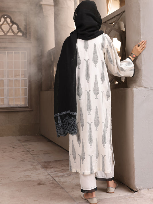 Black & White Cambric Unstitched 3Pc - AWP-3PS-505