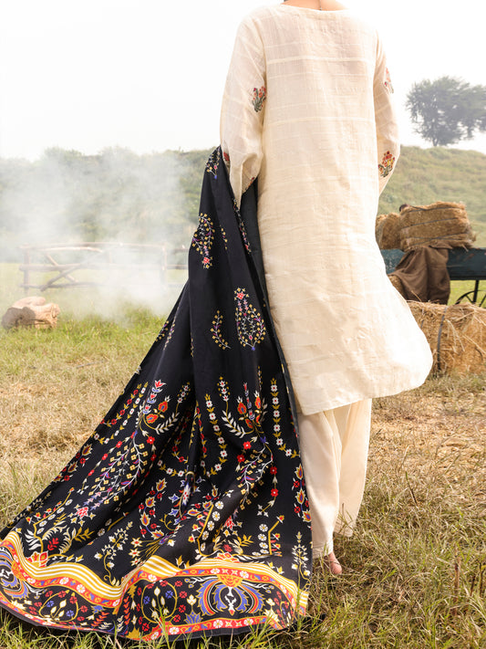 Black Yarn-Dyed 3Pc Stitched - AWP-3PS-313