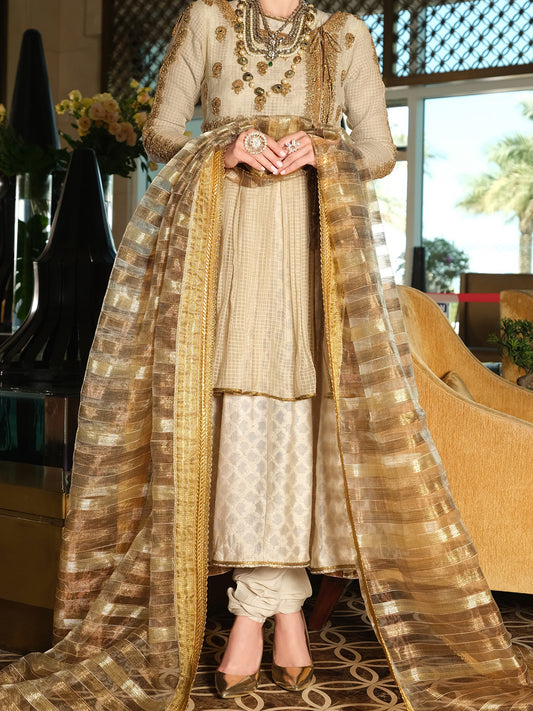 Beige Organza 3 Piece Formal - AL-3PS-LS-287