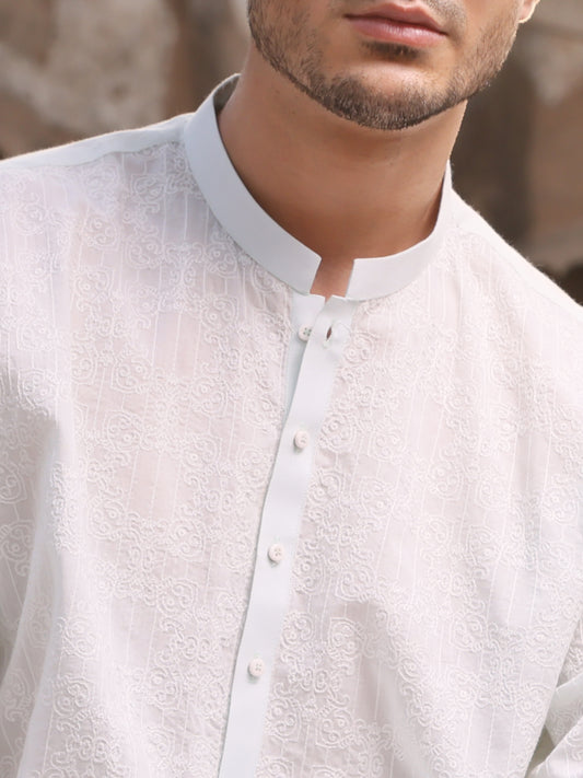 Sea Green Cotton Schiffli Kurta - AL-K-712A