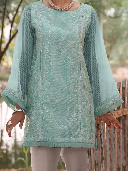 Sea Green Khaddi Net Tunic - AL-LK-780