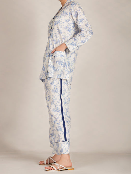 Blue & White 2Pc Stitched Nightwear - AL-LKS-NW-1004
