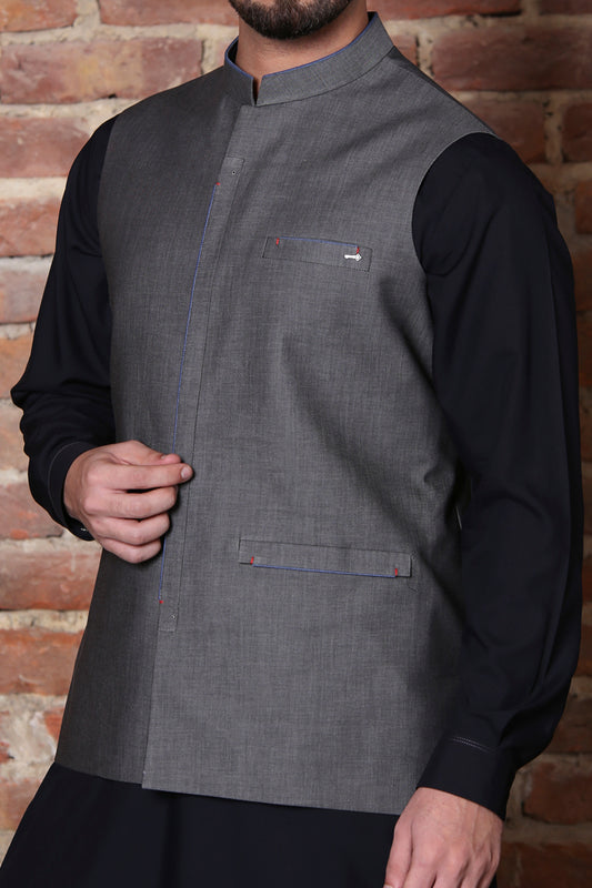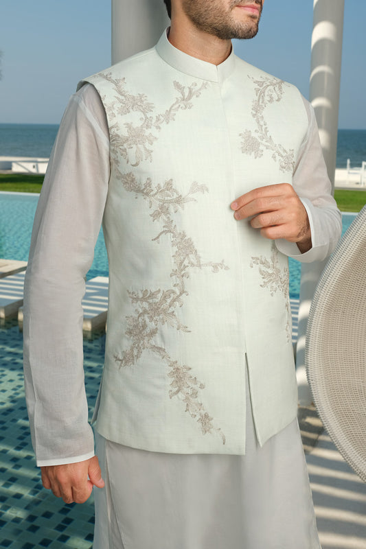 Ice Blue Khaddar Waistcoat - AL-WC-315