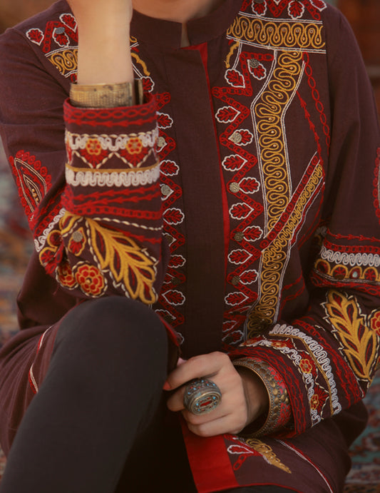 Brown Blended Kameez Shalwar - AL-KS-2494