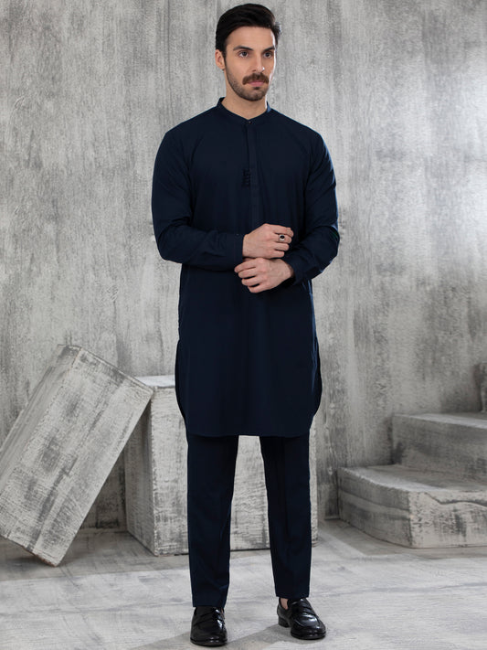 Navy Blue Blended Kurta Trouser - AL-KT-2828