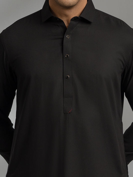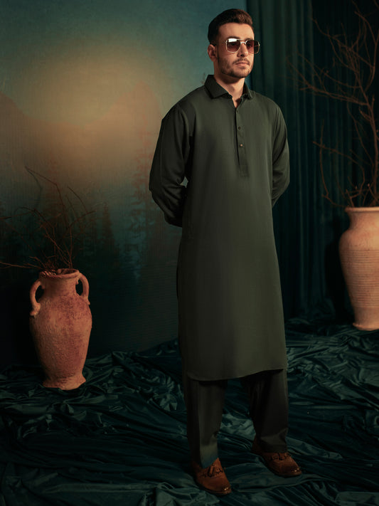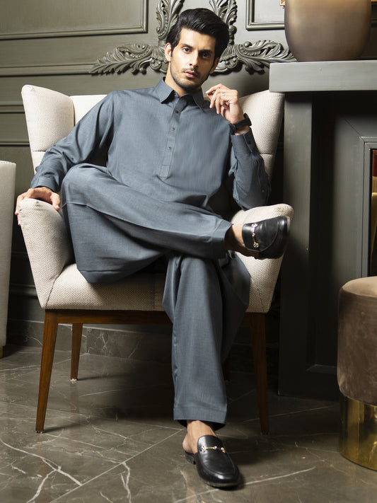 Dark Grey Blended Kameez Shalwar - AL-KS-2805