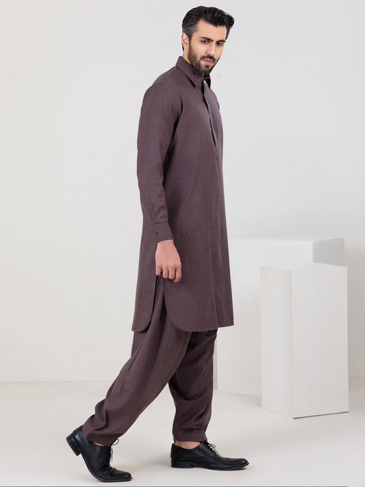 Brown Blended Kameez Shalwar - ALWA-KS-300