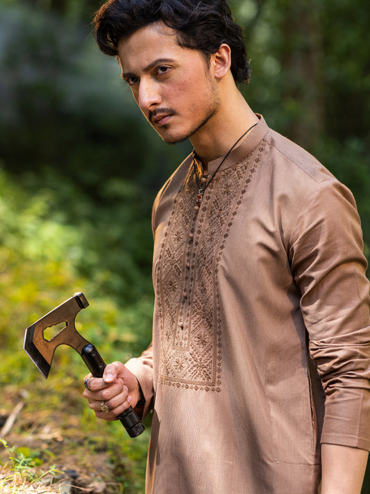 Camel Brown Blended Kameez Shalwar - ALT-KS-069