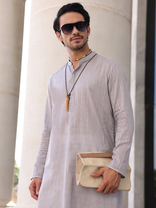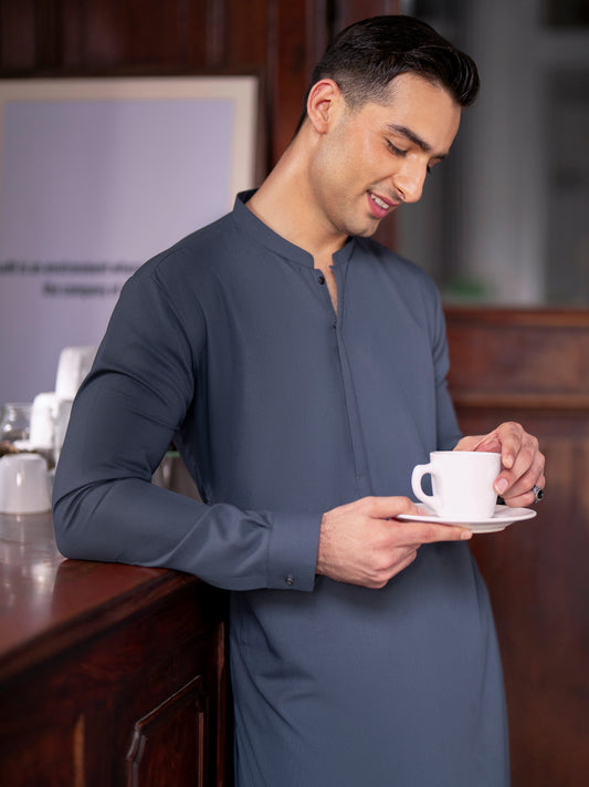 Ash Grey Blended Kameez Shalwar - AL-KS-2992