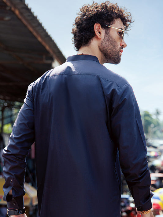 Navy Blue Blended Kameez Shalwar - ALWA-KS-448