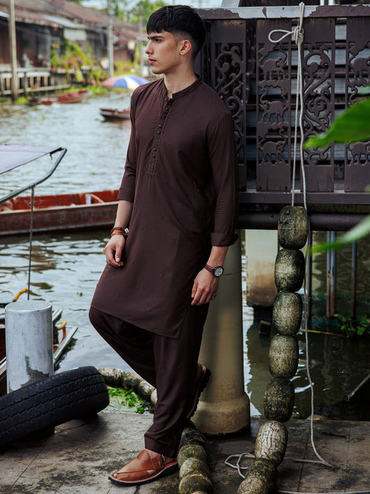 Dark Brown Blended Kameez Shalwar - AL-KS-2958