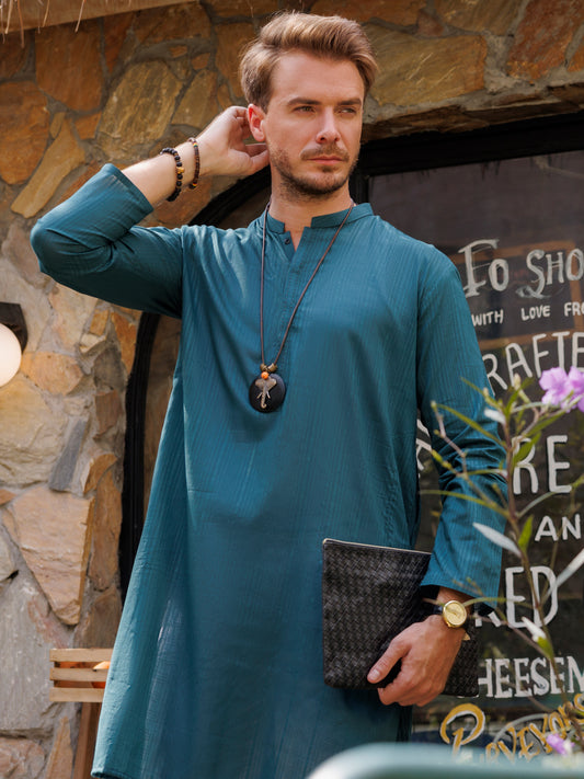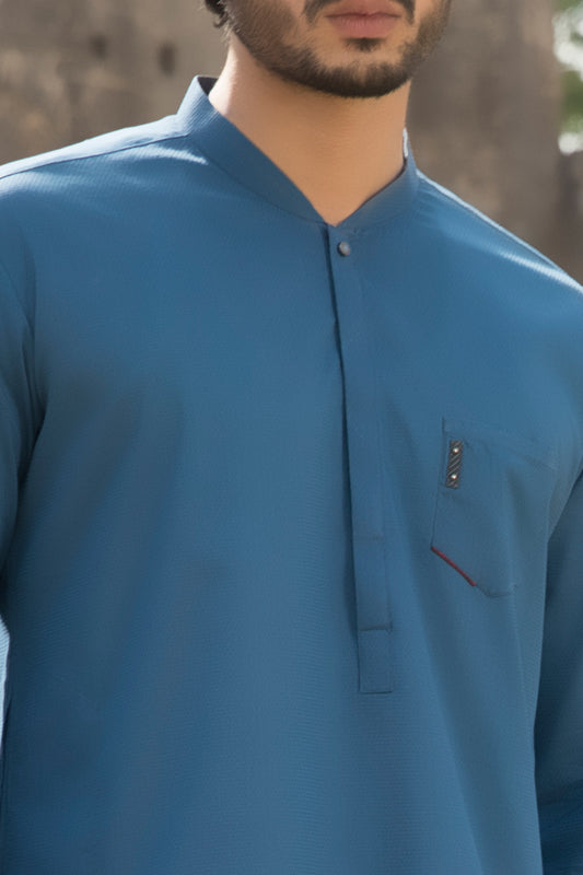 Teal Blue Cotton Kurta - AL-K-1146A