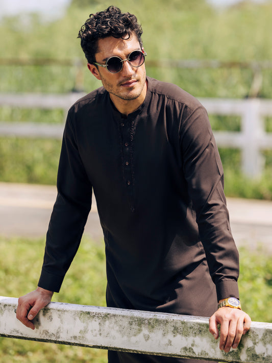 Dark Brown Blended Kameez Shalwar - AL-KS-3044