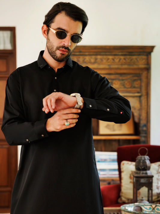 Black Blended Kameez Shalwar - ALWA-KS-509