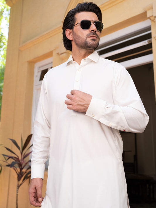 Off White Blended Kameez Shalwar - ALWA-KS-528