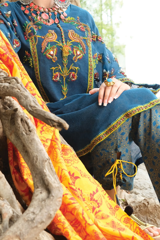 Blue Cotton Net 3Pc Stitched - ALP-728