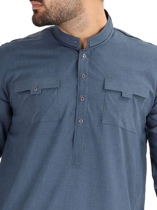 Light Blue Blended Kurta Trouser - AL-KT-2616