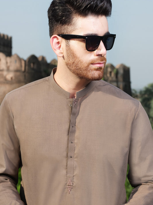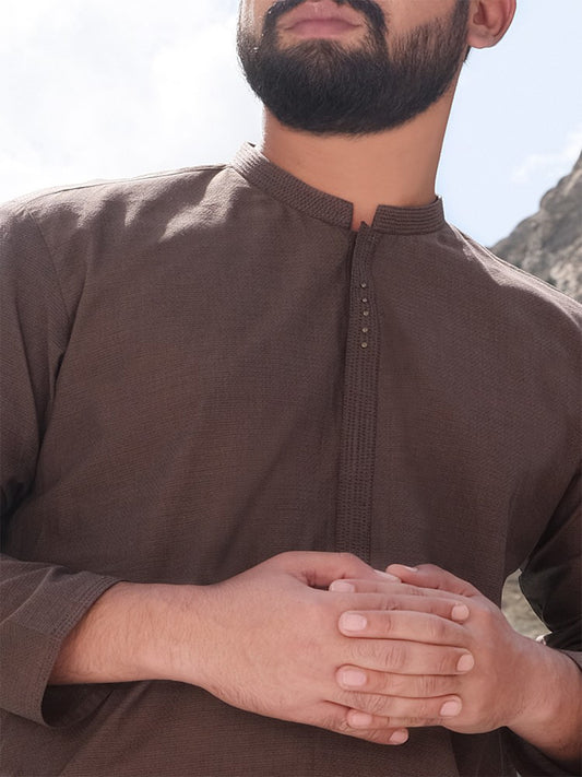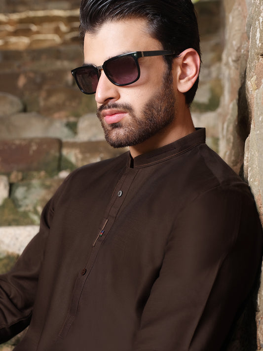 Dark Brown Blended Kurta Shalwar - AL-KS-2528