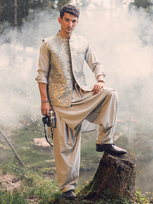 Cream Blended Kameez Shalwar - AL-KS-2630