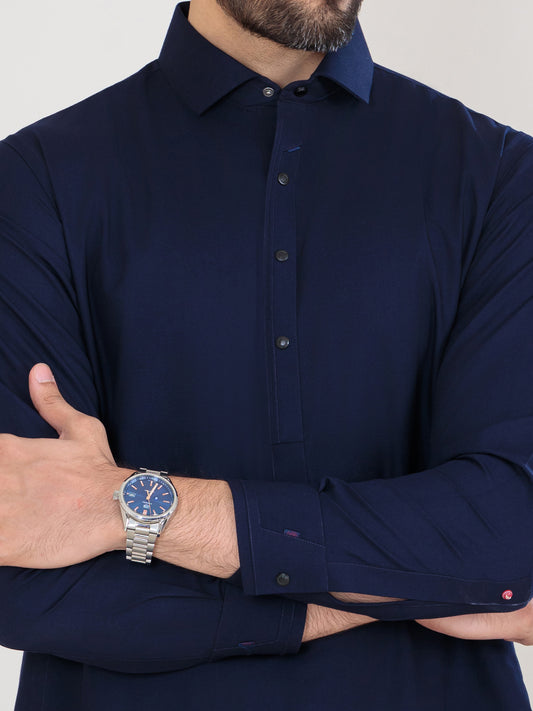 Navy Blue Blended Kameez Shalwar - ALWA-KS-350