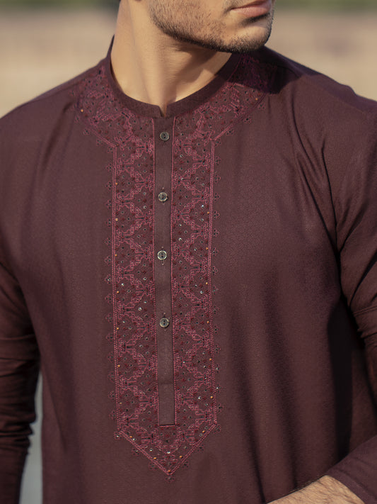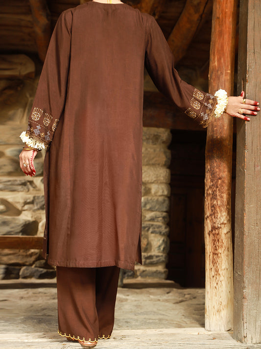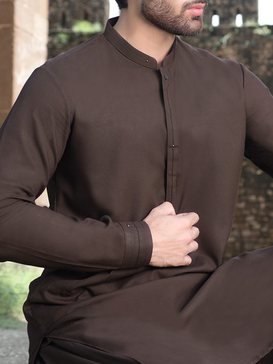 Dark Brown Blended Kameez Shalwar - AL-KS-2567