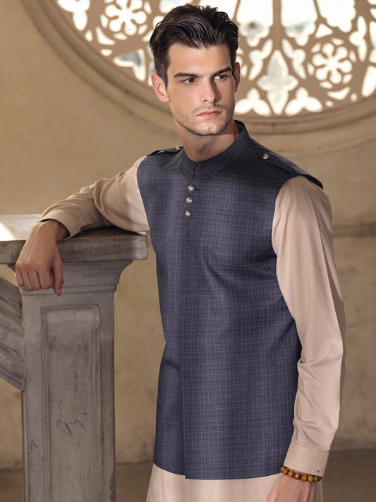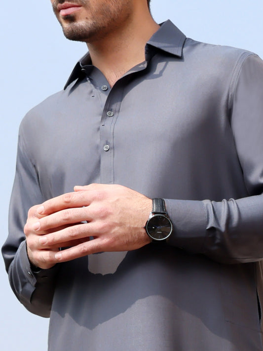 Charcoal Grey Blended Kameez Shalwar - ALWA-KS-314