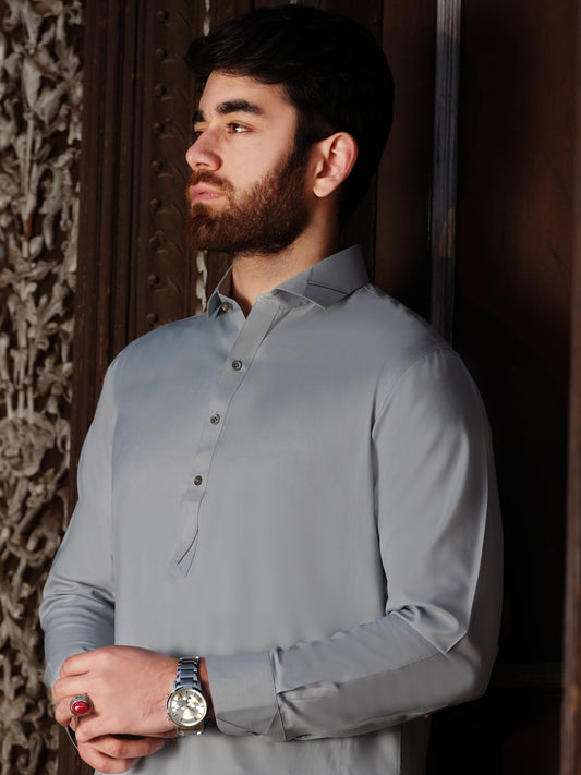 Light Gray Blended Kameez Shalwar - AL-KS-2549