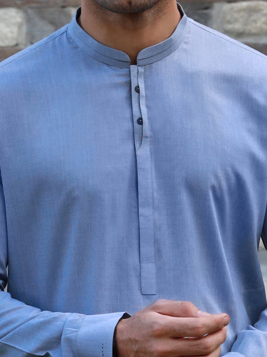 Ash Blue Blended Kameez Shalwar - ALWA-KS-193