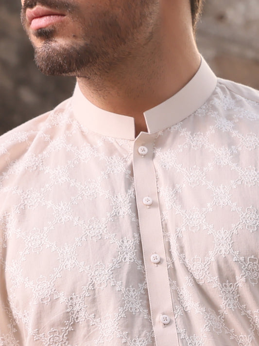 Fawn Cotton Schiffli Kurta - AL-K-712C
