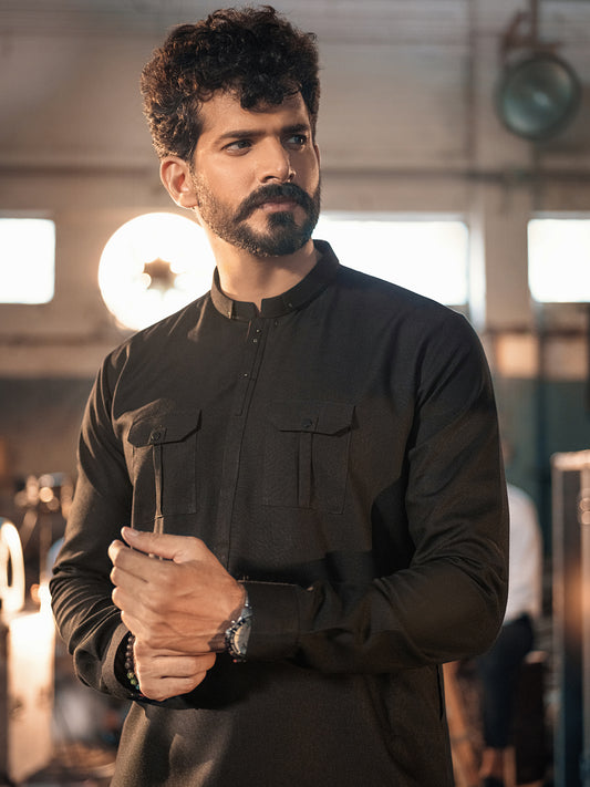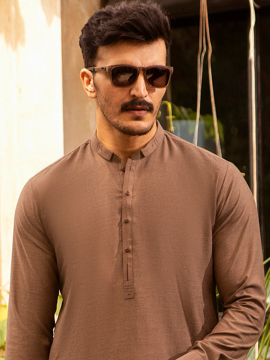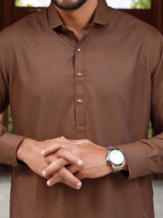 Brown Blended Kurta Shalwar - AL-KS-2690
