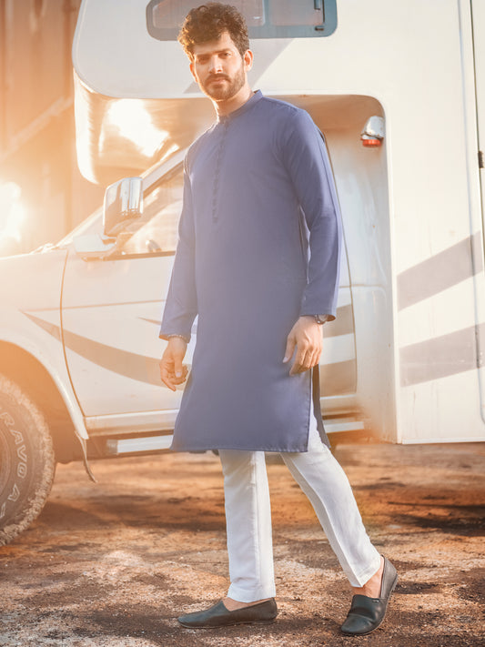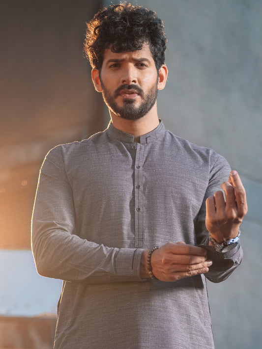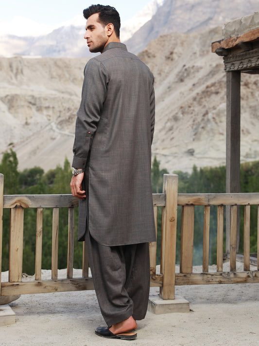 Ash Grey Blended Kurta Shalwar - AL-KS-2656