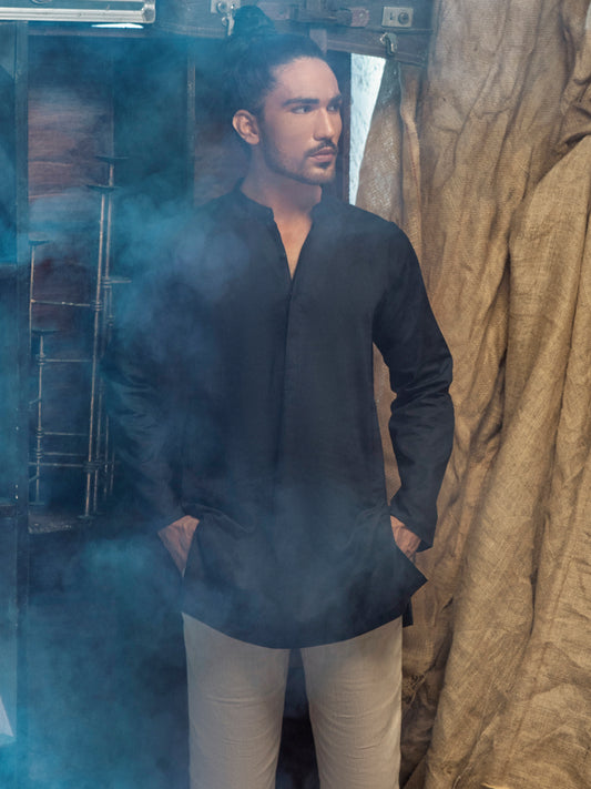 Indigo Blue Linen Short Kurta - ALCR-K-013