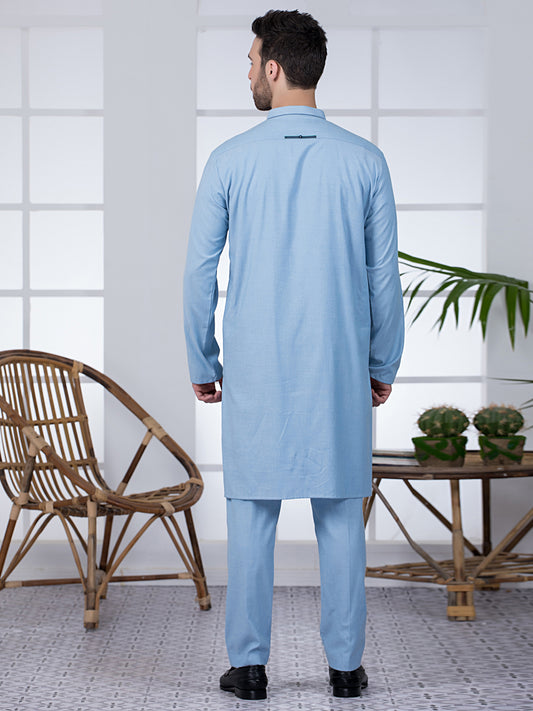 Light Blue Blended Kurta Trouser - AL-KT-2799