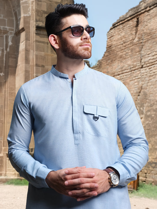 Ice Blue Blended Kurta Pajama - AL-KS-2559