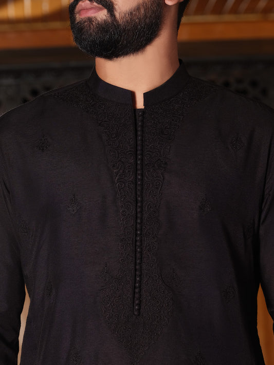 Black Cotton Silk Formal Kurta - AL-K-SP-025