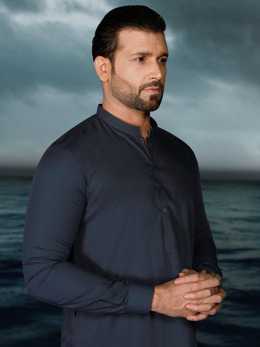 Midnight Blue Blended Men Unstitched Fabric - AL-Nizam-22