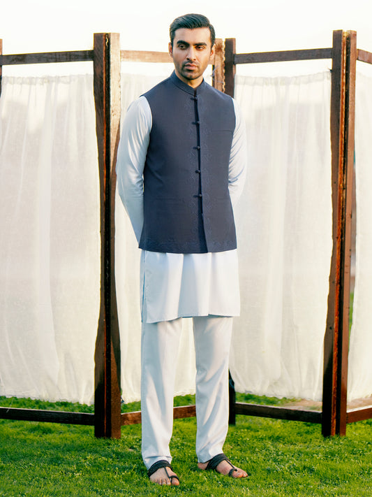 Dark Blue Blended Kameez Shalwar - ALWA-KS-532