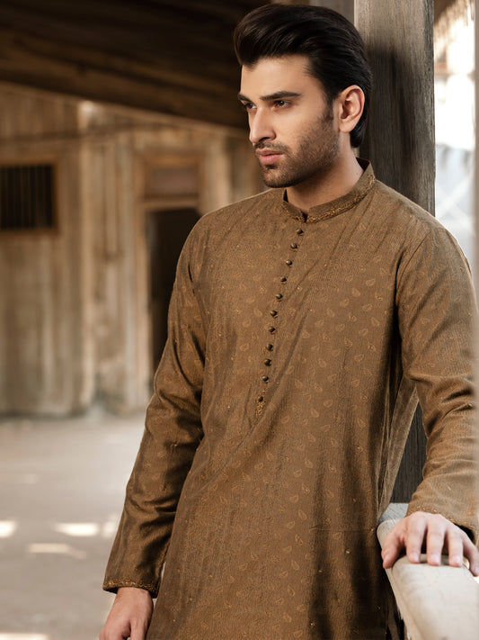 Brown Blended Kameez Shalwar - AL-KS-3224B