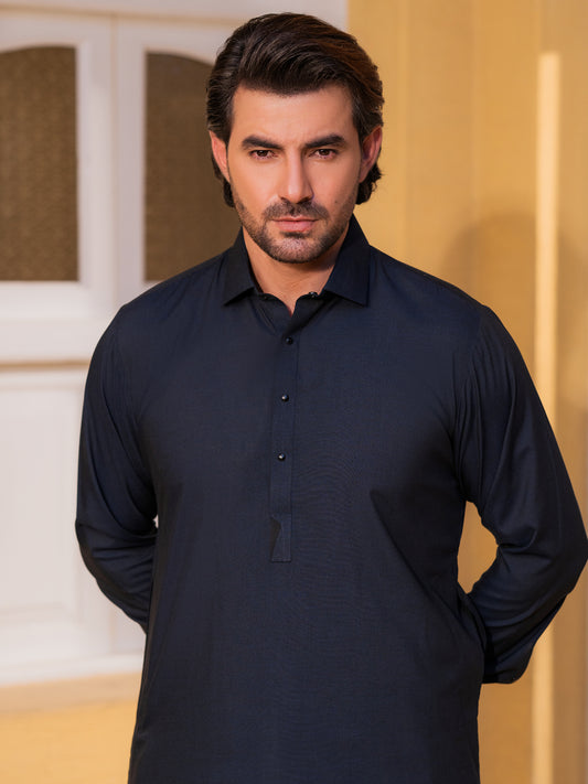 Black Blended Kameez Shalwar - AL-KS-3203A