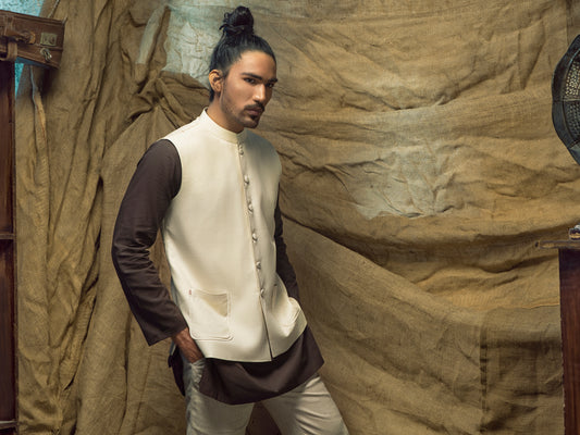 Cream Linen Cotton Waistcoat - ALCR-WC-002