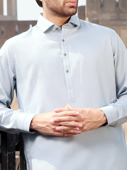Light Grey Blended Kameez Shalwar - AL-KS-2621