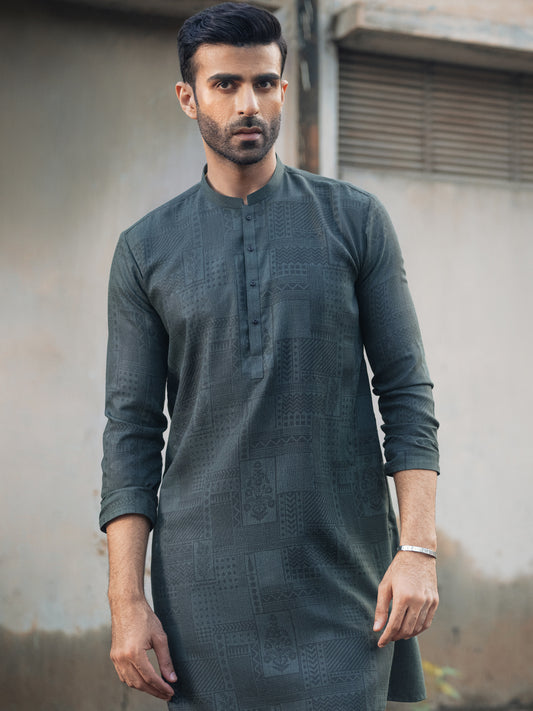 Green Textured Kurta - AL-K-970