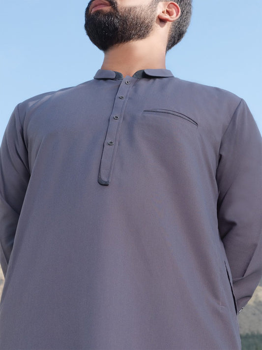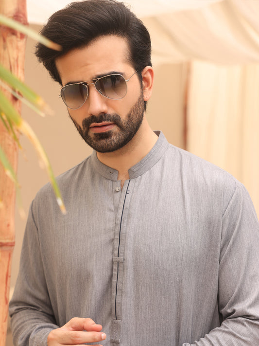 Light Grey Blended Kameez Shalwar - AL-KS-2437