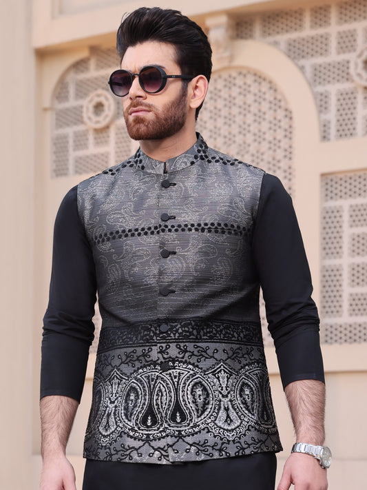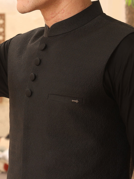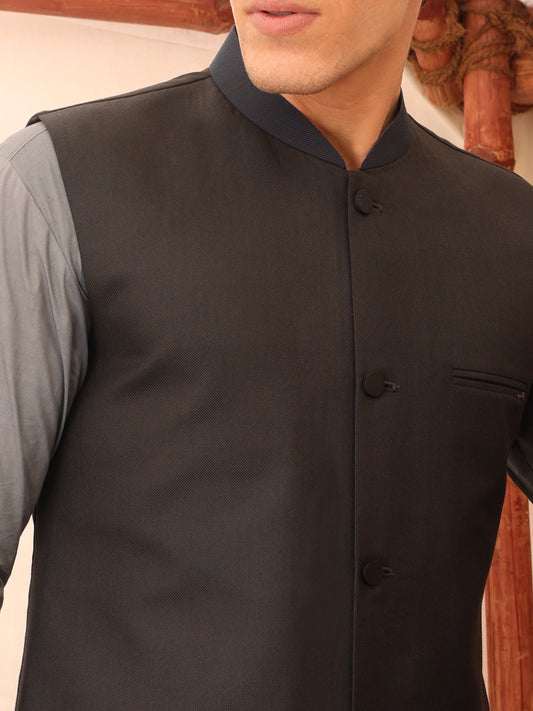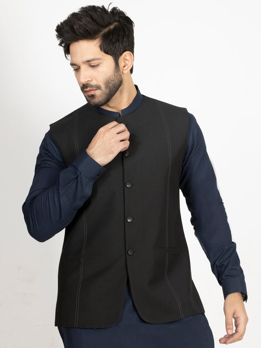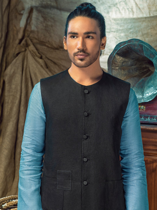 Black Linen Cotton Waistcoat - ALCR-WC-004