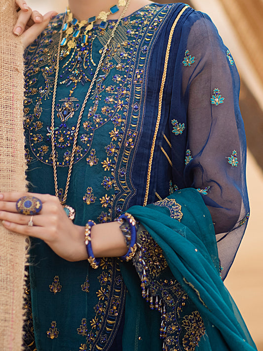 Blue Organza 3Pc Formal Unstitched - AL-3PS-LS-UN-332